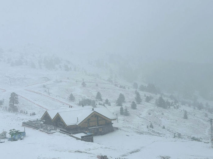Bolu’daki Kartalkaya Kayak Merkezi’nde kar yağışı aralıklarla sürüyor.